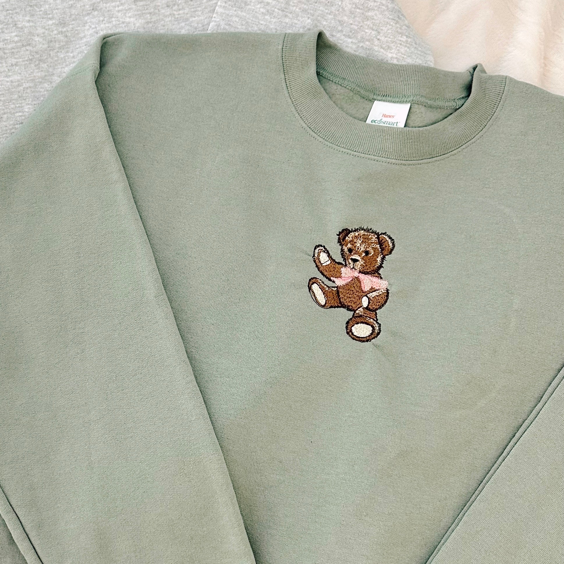 cutest teddy bear crew ever!!! embrace your coquette aesthetic with this staple piece. if you'd like a different color, select "OTHER" and please specify in checkout what color crewneck you'd like! if there are any issues with your design or order, i will email or text you with any inquiries :)