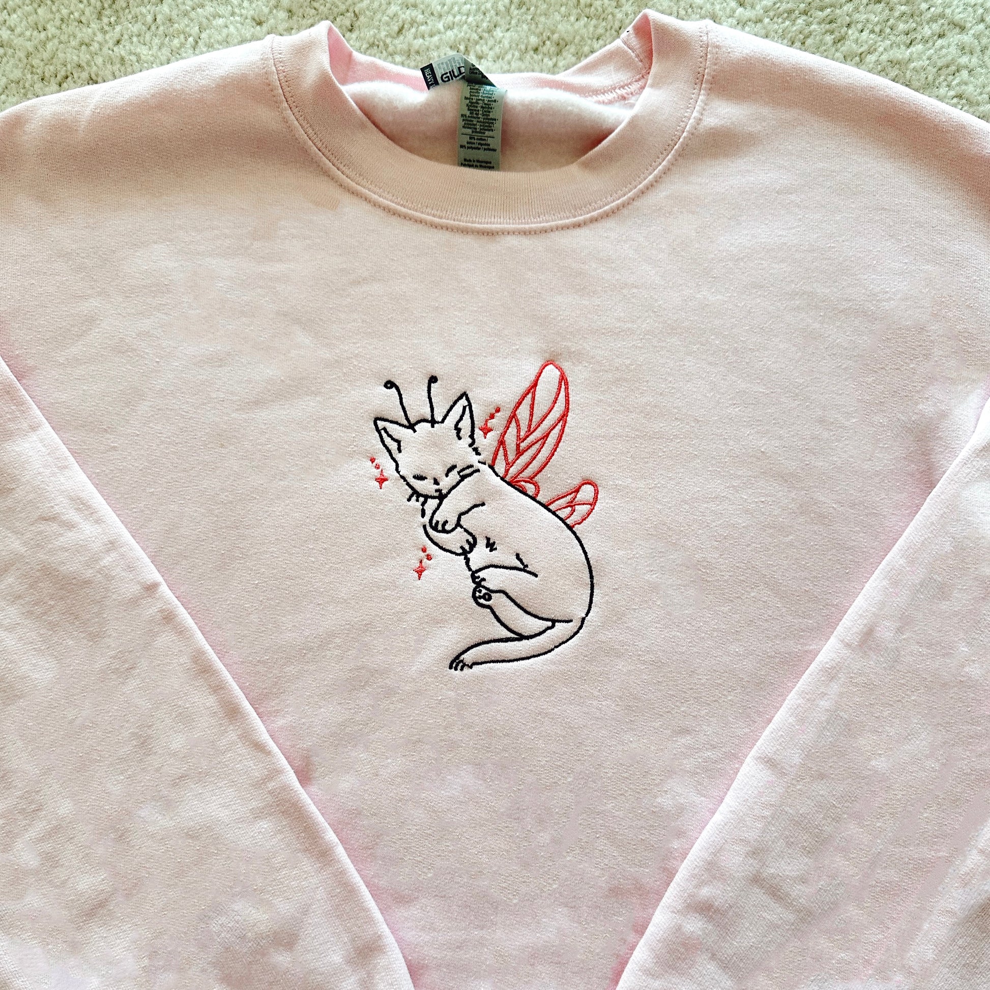 coquette cat lovers come here!!! the cutest flying kitty you'll see. if you'd like a different color, select "OTHER" and please specify in checkout what color crewneck you'd like! if there are any issues with your design or order, i will email or text you with any inquiries :)
