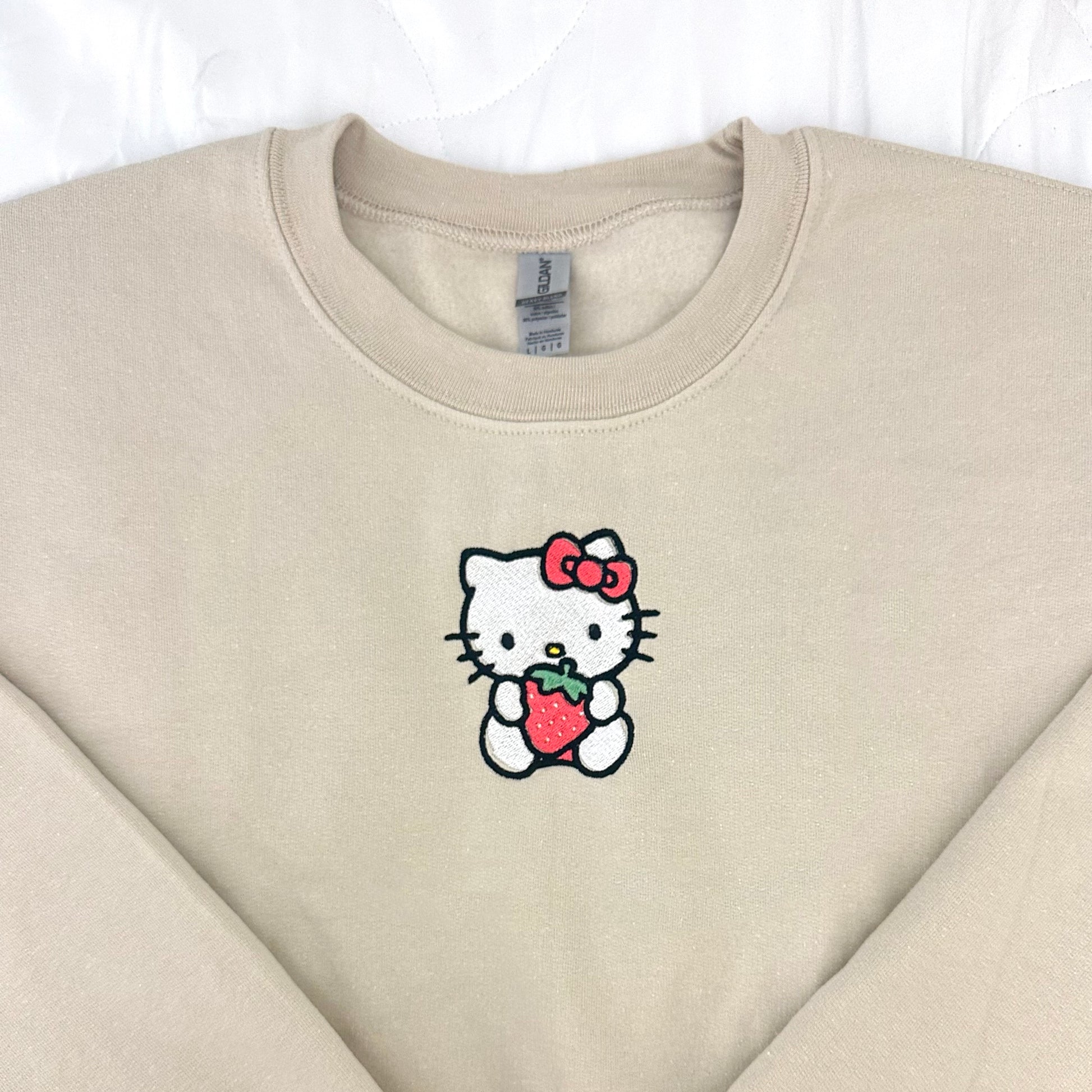 the cutest hello kitty crewneck ૮₍ ˶•⤙•˶ ₎ა 🍓 if you'd like a different color, select "OTHER" and please specify in checkout what color crewneck you'd like! if there are any issues with your design or order, i will email or text you with any inquiries :)